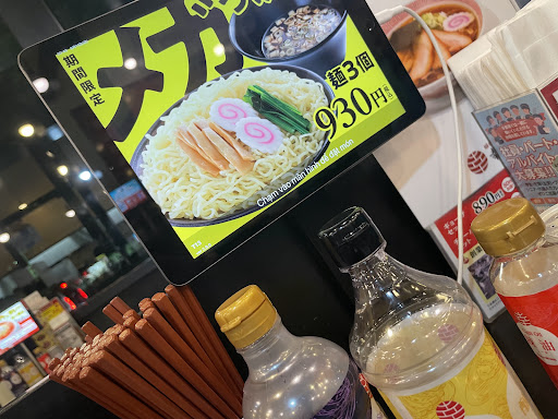不満点としてはロボットがラーメンを運ぶシステムですね。他の飲食店でも進んでいますが、ラーメンに限っては取りづらく、重いので結構大変かも。あと取り終わったらロボットのセンサー部分に手を近づける「なでなでシステム」があり、これがまた厄介。声でのアナウンス(取り終わったら僕をなでなでしてね)があるが、なれていない老人などはそのままにしていることがあり、結局人が運んだ方が早い。 あとタッチパネルで注文するので分からない人は店員を読んで店員がお客の注文聞きながらタッチパネルを操作する感じで...