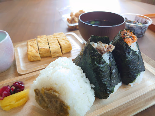 Read moreコチラはおにぎりの他、お惣菜なども買えるがイートインでもOKらしいので気になったものをイロイロ選択。今回はおにぎりを『炙り鮭・ふきみそ・甘豚チャーシュー』の3種とおばんざいから『からあげ』『ひじき煮』『おかあさんのたまご焼き』、『日替わり味噌汁(オクラとモロヘイヤ)』を注文です。