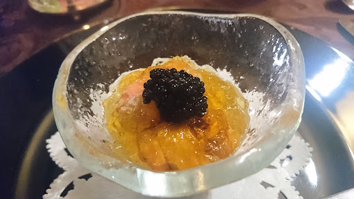 カブのムース ウニとキャビア添え フォアグラソテー 洋梨に載せて コンソメのなんとかスープww オマール海老のソテー...