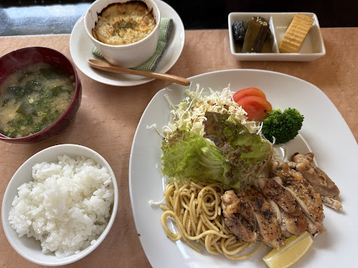 Read moreちょっと入り組んだ住宅街の中にあります。駐車場は縦長で奥に2台止まってあって、お店の人に聞くと、片方の前につけてくださいと言われ、そこに止めました。 他の方も言っておられますが、家庭的な洋風レストランのような感じで、カウンター4席、6人座れそうなテーブル席2台ありました。ご夫婦でされてるようで、落ち着いた雰囲気の中、のんびりと食事ができました。 千の道定食(トンカツ、エビフライ、生姜焼き)とカツカレーをいただきました。 量も味も満足で、こういう雰囲気のお店はいい...