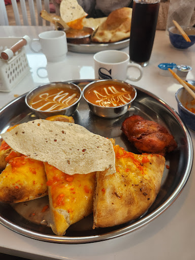 Read more2024.2.22 🅿️有り☆ 店内はテーブル席とフローリングの小上がりもあります☆ 今回は日替わりとレディースセットを注文☆ レディースセットはカレーが2種類選べてナンも選べるけど選べる種類が多くて悩んだけど、とりあえず今回はチーズガーリックナンとミックスシーフードカレーとオススメされたバターチキンカレーで注文☆ 待ってる間お代わり自由のスープを取りに...席に戻った頃すぐに、まずサラダが運ばれてきました☆ それから少ししてメインのカレーとナンが運ばれてきたけど日替わりメニューのナンが大きくてビックリしたけどチーズガーリックナンも少し、しっとりしててガーリック効いて美味しいしプレーンナンも、ほんのり甘くて美味しい☆ カレーも、どれも美味しかったけどカレーが余ったのでお代わりでライスを頼んだらお腹いっぱい過ぎました😅 店員さんも明るくて印象良かったし近くに来たら、また寄っ...