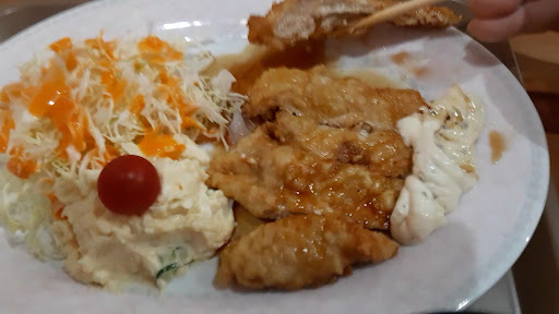 Read moreチキン南蛮定食(税込900円)を注文。チキンはムネ肉のようだが(モモだったらすまぬ)とても柔らかい。衣は薄めでさくっとしてる。口コミにある「ナゲット感」は何となくわかる。が自分はめちゃ好み。チキン南蛮は本場は...云々言う人いるが俺はこれ好きだなー。甘酢もたるたるも優しくていい味。そしてポテサラがうまい!奇をてらわずちゃんと...