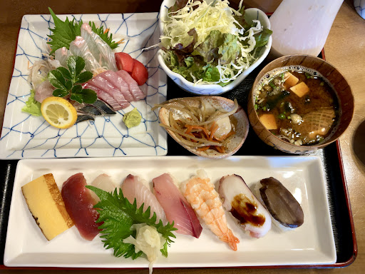 Read more平日のお昼に来店。R259田原街道からお店に来る迄は旧道を左折して狭い道を通るので要注意。 お店の路面ではテイクアウト用の弁当も販売しているようです。 入口で靴を脱ぎ、店内正面は居酒屋風で、カウンターは堀席になっていて、左手には座敷があります。 メニューは沢山あり迷った挙句、Bランチ税別¥1,600-を注文。 握り8貫に地魚の刺身4種、味噌汁、小鉢にサラダまでセットされていて美味しくて食べ応え十分でお得なランチでした。 入口のホワイトボードには刺身定食税別¥1,200-の表示もあったけど、Bランチで正解だった。地魚が食べられるのはいいですね。 メニューには海鮮丼セット、大アサリ、貝づくし、おまかせセットなどなど、美味しそうなメニューがずらりとあるので、このお...