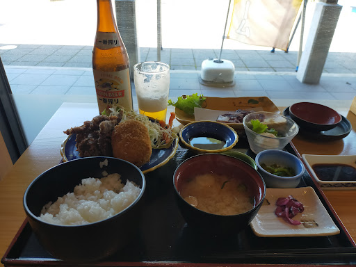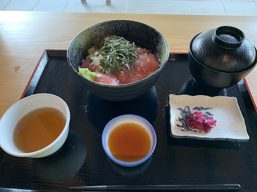I love tuna, so I had the tuna on rice. It was really fresh and juicy. You can place your order by selecting the food from a touch screen. It is in Japanese, but there are pictures for guidance. Next to the restaurant, there is a souvenir shop that also has some bread or bento that you can stock up...