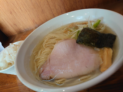 鶏塩そばが復活してるという情報を得たので再度来訪。コロナ禍により以前はあった座敷は閉鎖されて席数もカウンター3席、1人用テーブル2台、2人用テーブル2台に減少。カウンターにも厨房や客席間に仕切りが設けられてて対策は高めと好印象。 肝心の鶏塩そば…一口スープをすすったら妙に尖った塩気が広がる。中細ストレート麺との相性は良くないと個人的には思う。あと、その麺がおいしくない……小麦の風味もしない、おまけに茹で時間が足りないのか固い。これは大きいマイナス点。しかもスープはギリギリ及第点に引っかかるかどうか。具材がなかったらたった一杯のラーメンを食べきれなかっただろう。逆に言えば具材にめちゃくちゃ助けられてる。鶏チャーシューはジューシーで豚チャーシューも噛み切るのにちょっと苦労する厚さ(美味しかった)、メンマは長さに驚く。味もいい。味玉も美味しい。ぶっちゃけ具材だけでおつまみセットとしてテイクアウトしてほしいくらい。 一緒に頼んだミニ豚バラなんこつ飯、こちらは普通に美味しかった。ピリ辛の豚バラとなんこつが押し麦の入ったご飯にかかって、するするいけた。ただ小さいお子様には軟骨の硬さや辛さがつらいと思うのでご注意を。 それにしても、前こんなに麺がまずかったっけ…?と思いながら店内をよくよく見ると、閉鎖されてたと思ってた座敷部分が現在製麺所になってる模様。つまり、自家製麺。 …………おとなしく買った麺で作ってくれた方が客は嬉しいです………。