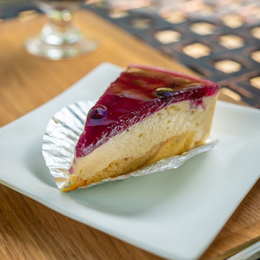 ◯レアチーズケーキ330円 ブルーベリーなチーズケーキ。甘酸っぱいの最高。
