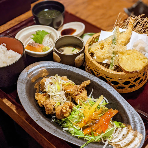 2021年3月再訪 本日はランチ 11時30分の開店5分前で 待ち客が4組10人程 日替りお手軽和膳924円(tax-in) メインは油淋鶏 タッチパネルにて注文 約5分程で料理の提供 刺身に天ぷらに茶碗蒸し ボリュームタップリだし サラダとか彩りもキレイ ライスお替りは無料らしいし コスパは良いですね