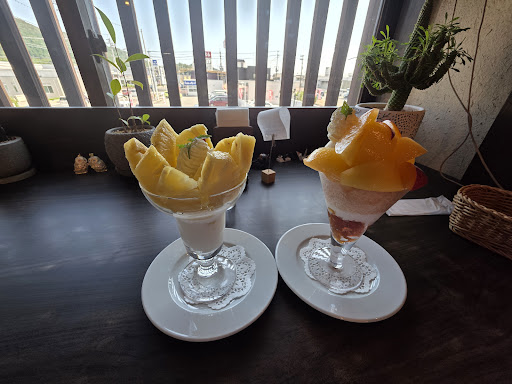 Read moreまずは写真を見てください。 めっちゃビジュ良すぎでしょ、、、🫶 通い始めて一年になりますが、毎回あまーいフルーツを用意していて店主のフルーツ愛に毎回感動します。 悪い口コミとか書かれていますが 私はこのフルーツカフェかじゅまるを推してます。最推しです!! 今の時期は桃が沢山注文が入ってる感じです。 予約して「桃パフェが食べたい」と伝えないと桃パフェが食べれなかったりします!注意してください!⚠️ あと土日とか祝日は混んでる可能性あるので ゆっくりしたい人は平日の方がいいと思います! でも、予約してた方が安心かもです! このパフェたちは一人で作ってるらしいので 提供に時間とかかかるかもしれませんが このパフェたちのビジュみてください。素人なら何時間かかる。、?ってなりますよね?? それを一人でやっているらしいので待ってあげてください。🫶 ちゃんと待ってたら美味しいしビジュやばいパフェが出てきますよ!!🫶 パフェを提供されたときのあのドキドキ感たまりませんねー!🥰 メニュ表も凄いこだわり多いいのでよく見てあげてください!! めっちゃめっちゃめっちゃ美味しいです!!
