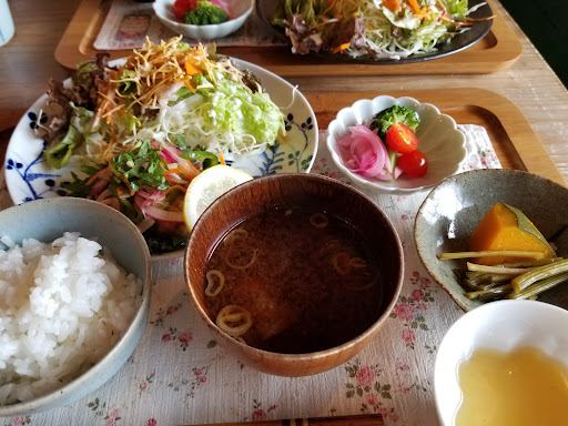 Read more近所のママ友と行ってきました。うつわも可愛いし 野菜たっぷりなメニューで見た目もお腹も満足です。私はサバの南蛮漬けのような(しっかり名前がわからなくて申し訳けありません)ランチを頂きました。友達は煮込みハンバーグのメニューでした。食後のデザートはロールケーキと...