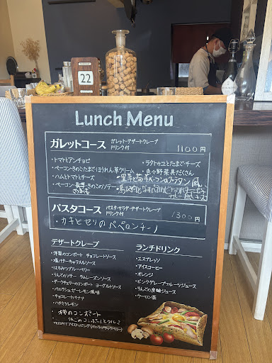 お手頃価格でガレットが食べられると知り、伺いました✨🍽ガレットとクレープは大好物なので期待値が高かったのですが、期待は裏切られずしっかりといいランチに出会えました😭🤍メニューが豊富で、期間限定メニューもあるのでいつ行っても楽しめそうです(๑•̀ㅁ•́ฅ⭐️全部気になりましたが、私はベーコン🥓さつまいも🍠キノコのソテー🍄にしました!卵が半熟で、伸ばして食べると抜群に合います🍳 他のも沢山具材が乗っていて美味しそうでした😋一番乗りだったので、早めに到着しましたが、あとから来た人は少し時間がかかっていそうだったので、時間に余裕のあるときがオススメです✌️一つ一つ丁寧に店主の方が作ってくれて、ライブキッチンで目の前で作っているのが見られます👀食べ終わるとすぐにクレープも作って下さりました!熱々の状態で食べられることはなかなかないのでいい経験💦クレープメニューも豊富で迷いましたが、塩バターキャラメルソースが気になったのでそれにしました🧈美味しい!ドリンクも着いてこれで1100円は破格のランチだと思います- ̗̀ 🍽𓈒𓂂𓏸なかなか食べられるものでは無いので、この辺では有名なのかすぐ満席になりました✨駐車場が少ないという口コミを見ていたので早めに行きましたが、たしかに駐車場が狭かったので停める場所には注意が必要です⚠️🚗...