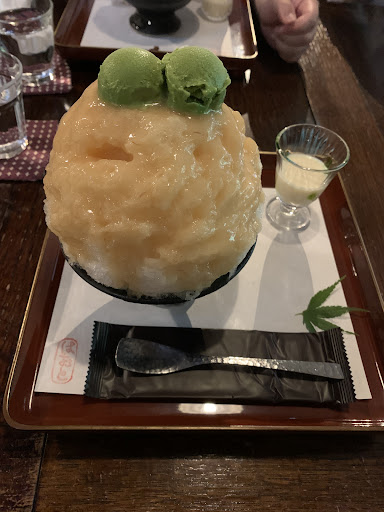 まずいちごミルクは生いちごジャムを満遍なくかけたかき氷で一口たべたら濃厚な味でう、うまいw 日光の天然氷と言われてもあまりわからないがwたしかに美味い😋練乳はお手製らしくねっとり甘い系のではなくサラサラ甘すぎず、大人なかんじですw抹茶も甘すぎず大人な味でした、ほうじ茶は自分てきにはめちゃ美味しかったんだけどもう少しほうじ茶強くてもいい感じかなぁでも美味しいです☺️最後に桃なんですが流石限定うますぎるwもものスムージーを満遍なくかけた感じで氷と最高にあいますw かき氷だけではなく他にも気になる物がいっぱいあったので、ま...