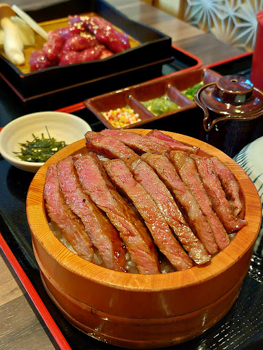 どちらも、前菜&デザートが付いてこのお値段は嬉しい価格(^^) メニューの中でも特にリーズナブルなこの2つのメニューですが、安くて美味い!しかも、牛ロースまぶしは見た目も豪華な逸品です! 実のところ、リーズナブルな牛ロースまぶしは飛騨牛ではないですが、焼き加減が絶妙でカット面のレア感が堪らないですね~ 鰻のひつまぶしと同じ三段階の食べ方で楽しめちゃいます♪ 切り落とし焼肉のほうは店員さんに聞いたところ、正真正銘の飛騨牛だそうです!切り落としでお安い設定のメニューをラインナップ出来るのは一頭買いの特権ですね! お客さんとしてはとても有難いお店ですね!多少の歯ごたえがあるお肉ではありますが、銘柄和牛の甘味と旨味を堪能出来ますね!