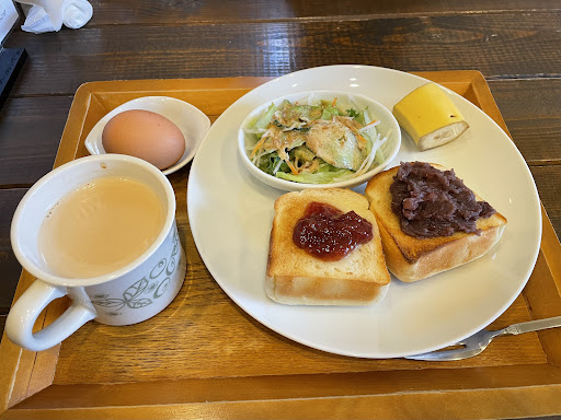 Read more営業時間が8:30~12:00迄のモーニングだけのお店。 モーニングはA~Dの4種類あり、ドリンクに小倉&ジャムのトースト、サラダ、たまご、フルーツ、デザートが付くAのモーニングを頂きました。 サラダのドレッシングは、ぽん酢ベース?でさっぱり感があり、トーストは、ふわもちで、特に小倉は小豆感がある甘さ控えた餡で美味しかったです。 茹でたまごは、たまたま殻が剥き辛かったですが、普通のたまごと違い、濃厚な感じで旨みを感じました。 また食後に温かいお茶のサービスがあり、うれしかったです。 店内はカウンター席はなく、6テーブルのみでしたが、ゆ...