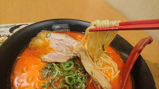 わずか3分ほどで呼ばれたラーメンは、名前の通り真っ赤。 辛そうではありますが、一口いただくとかなりクリーミーな豚骨スープ。 あれま、これは予想外に美味しいですよ(笑) 辛さはほとんどないんですが、甘さを感じる優しいスープが止まらない。