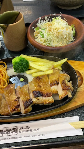 注文したメニュー 車留満定食(シングル) この定食は、大きな鶏肉一枚を使用しており、熱々の鉄板で焼かれて提供されます。 席に運ばれる前から、香ばしい香りが漂い 食欲をそそります。 男性なら「車留満ダブル」でも余裕で食べきれるボリューム感で、あまりの美味しさに一気に完食してしまうほどです! 鶏肉にはしっかりとした味付けされていますが おろしポン酢も用意されており それをつけると、さらに甘みと旨みが強くなり 胡椒の香りと旨みがさらに伝わり 一口、さらに一口!と止まらなくなります。 鉄板には、ポテト、ナポリタン、玉ねぎ、ブロッコリーと子供からの洋食と言えばこれ!っと喜ばれる サイドもしっかり揃えられています! 今回はシングルにしてしまい後悔でした! 今度は絶対に!!ダブルにします! とても美味しく大満足でした! 後、夏季限定...