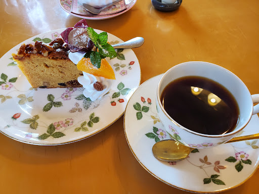 お盆明けの平日の15時前に訪問。 当初行く予定だった喫茶店が臨時休業だった為、近くにあったココに入ってみる事に。駐車場は前には3台分しかないが、奥に13台分ありゆったり停められた。中に入るとまずアンティーク調のオシャレな公衆電話が目に入る。席は8割方埋まっていた。ティータイムなので自家製ケーキと自家焙煎珈琲をセットで注文。どちらも美味しくいただいた。カナダの赤毛のアンの家をイメージしたであろう建物も雰囲気が...