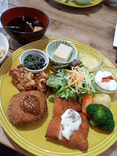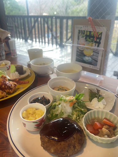 Read more北播磨をめぐるバスツアーでランチに訪れました。 コテージが並ぶ余暇村公園の中にあり自然がいっぱいのうえにお洒落で洗練されています。 座席もゆったり配置されてあり暖かくなればテラスも気持ち良さそう。 ワンプレートに百日鶏の食べ比べとして唐揚げ、ミンチカツ、チキンカツが熱々で運ばれてきます。 サラダも新鮮でお惣菜のほのかに甘い味付けが優しい。 スタッフさんたちも優しいのです。 旅行中だとわかっていることもあり色々気遣って下さいます。 玄米ごはんの量が少なめでものたりないかなと感じていたのですが後からメニューを見るとおかわりは追加料金なのかも。 きっと材料など厳選されているからと思いますが価格帯は少し高めです。 今回は1,800円でラン...
