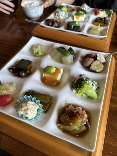 ย ย ย Read more10/10 canโt wait to come back. Delicious food, beautiful view of the terraced fields, plenty of parking, and they accept credit card! When you want to escape the gorge crowds and fried foods, come here for a set meal of 9 simple seasonal vegetable-forward dishes (pescatarian not vegetarian - as some use fish flakes), optional meat add-on (the beef melts in your mouth), and dessert. The tomato soup was a welcome surprise after always...