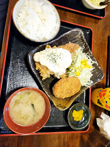 Read moreThis is a very popular restaurant. We arrived at close to 1pm and there was already a line of about 6-7 groups in front of us. You are given numbers and the tables turn fast so the wait was not too bad. We ordered the fried oyster setカキ焼き定食, a beef croquette and a charcoal grilled chicken set 宮崎鶏炭火焼き定食. The oysters and the croquette were really done well and delicious. The charcoal grilled chicken is a local specialty. It was our first time trying this dish so we have no basis for comparison, but it was not to our liking. We thought the chicken was too salty and the taste of charcoal was a bit strong for us. The service was fast , the staff friendly and we did enjoy the other...