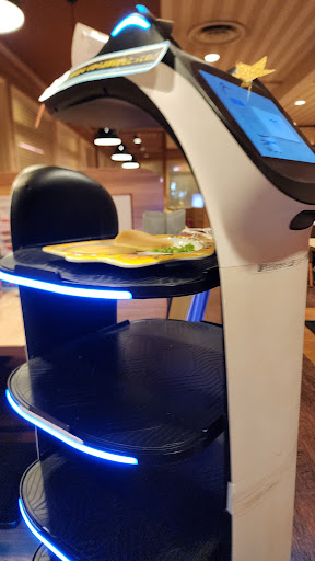 You can't ask for much more from a family restaurant. Food delivered via robot which my child...