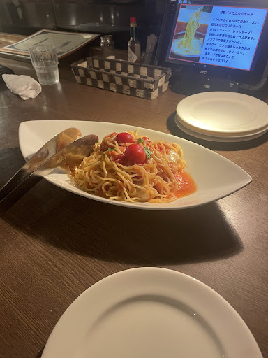元々ソースにチーズが入っているのか…?と思って食べてみるが、パルミジャーノレジャーノの芳醇な香りはほとんどなく、一生懸命草の根分けて探すとはっ!と発見できる程度。塩辛めのクリームソースパスタといった感じ。 そして生パスタはモチっというよりぐにゃっとした感じで、恐らく茹で時間が短すぎて生感が…さらに麺同士が一部ひっついて茹でたせいか固まってその部分は余計に火が通っていない感触。濃厚クリームで引っ付いた感じではなく、明らかに麺が引っ付いた状態で茹でた感じ。