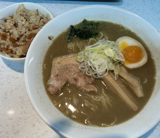 今回はつけ麺(担々風)をいただきました。並盛でも麺のボリュームは結構あります。つけ汁の味は確かに担々麺風です。ここのお店の担々麺は焼肉っぽい味がするのですが、このつけ汁には無いので、こちらの方が好きです。つけ汁はマグカップっぽい、つけ麺としては珍しい形の容器に入っていて、表面積が小さいので少なく見えますが実際は十分な量があります。この容器にはどんな意味があるのか?とりあえず表面積が小さいので若干冷めにくいのと、コーヒーカップみたいな取っ手があるので、熱々でも持てる...