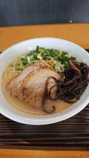 あっさりとした豚骨ラーメン。スープは熱々で、麺は硬めでした。