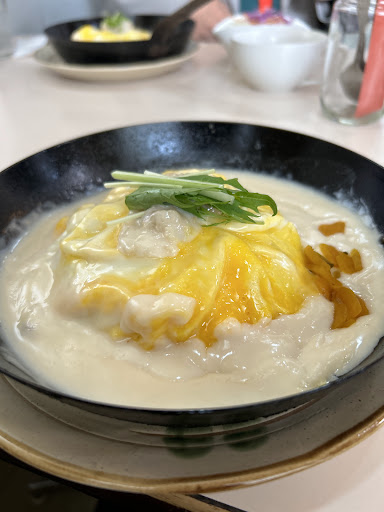 鉄鍋にふんわり盛られた黄金色のオムライスは、まるで雲海に浮かぶ島のよう。周囲を包み込むのは、ただのクリームソースではない——ホタテクリームソースだ。やさしい白に隠された貝の旨みが、口に運ぶたびにじんわりと広がる。卵の柔らかさとライスの香ばしさ、そこに加わるホタテの繊細な海の香り。まさに五感で味わう一皿。