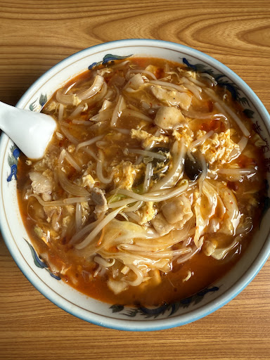 Read moreTHE昔ながらの大衆食堂&町中華のお店。 ラーメンは以前に何度か食べた事があり、鶏ガラ、豚ガラ、魚介の効いたあっさり味のラーメン。 今日は、以前から食べようと思っていた「すっぱたんめん」をオーダー。 ここのお店は味の濃さが薄めに感じるが、食べ進めるとちょうどよくなってくる不思議なバランス。 すっぱたんめんも例外なくそうでした。 感想を端的に述べれば、野菜がたくさんのった酸辣湯麺。 具は豆板醤で炒めた沢山の野菜と豚バラで、溶き卵入りのピリ辛あんかけスープが全体をまとめ上げている印象。 麺は細めのほぼストレートの麺で、伸びにくくもちっとした美味しい麺でした。 酸味はおとなしめだったので、酸っぱいのが苦手な方も食べやすいかと思います。 早く静かな店内なので、落ち着いて食事出来ました。 あと、店員さん(娘さん?)の接客が良く、帰り際も「ありがとうございました」と、ちゃんと目を見ながら笑顔で言ってくれた...