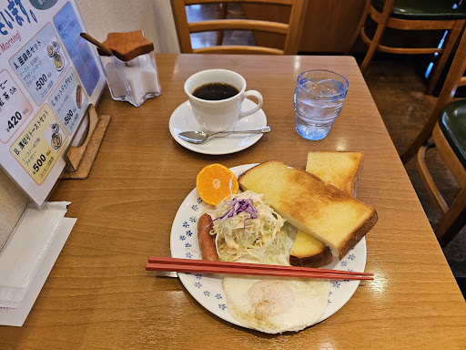 税込500で、このモーニングは、コメダを越えた?!大袈裟かもしれませんが、おいしく頂きました。 店内2人がけのテーブルが10個とカウンター席四席。平日の8時代でお客は私も含めて三名程度でゆっくりできました。常連客さんが多いようですが、マスターと他のお客さんの会話が微笑ましく、楽しませて頂きました。 マスター1人で切り盛りされていました。私が退店する時に、マスターは配膳中で、私はレジで待っていたのですが「ちょうどやったら、レジにおいといて!(^ー^)」と気さく...