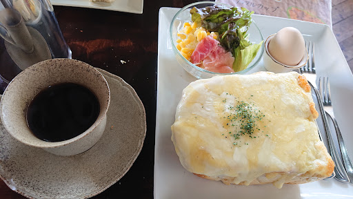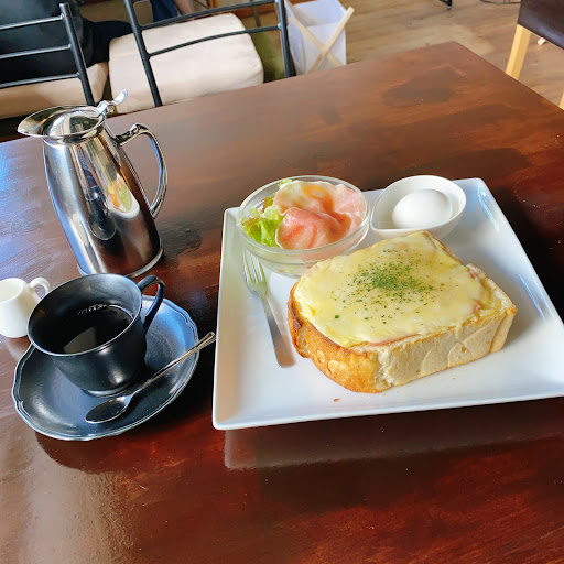 Read more8月4日オープンの新店。盆休み、土曜日9時過ぎに初入店。先客2組。カウンター席に座りました。 後ろのドアが開いて個室出現。計3組待ち〜。 入店して50分くらいしてトーストプレートが届きました。その後、カップのコーヒーとポットが届いた。 コーヒー、美味しい。 トーストは、厚切り。ボリューム感すごい。 マーガリン?バター塗った状態で届きました。 メニューではゆで卵だったのに届いたプレートにはスクランブルエッグ…残念。 ポットのコーヒーは、嬉しい。おかわりしたい時もあるので2杯飲めるのはいい。 オープンして日が浅いので段取り悪そうというか悪い。自分のあと、一組入店。その後は、食材切れで入店お断りしてました。 コーヒー、トースト美味しいのでまた来ます...