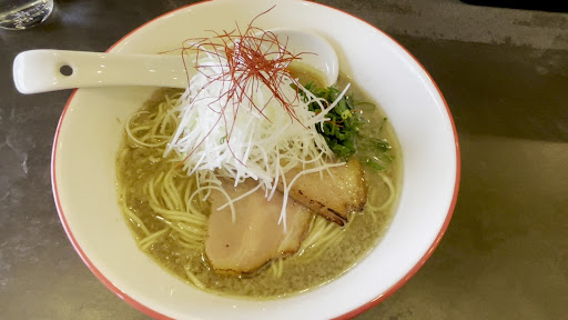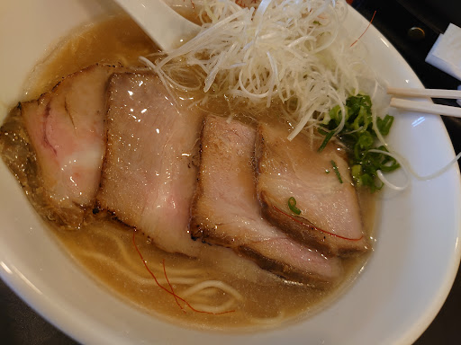 Read moreいりこラーメンが食べたくなり、今回はじめてお伺いしました。 人気店なので、少し早めに行きましたが、店舗前駐車場は満車。 店舗裏側にも駐車場が有りましたので裏に駐車出来ました。 入口に入ってスグ右側の券売機で券を購入。 色々メニューが有るのですが、基本的なラーメン以外のメニューが分かりにくいです。 文字の書体もパッと読めないです。 また、設置高さも低い感じで、下の方のメニューが読みづらい。 入口スグなので後ろに他のお客さんがいたら、焦ってマゴマゴして、ナカナカの初見殺し。 事前に他の方の紹介画像とかで見て決めておく方が良いですね。 その券売機の反対にはウォーターサーバー。 お冷はセルフです。 店の雰囲気は良かったです。 店員さんの愛想も良かった。 今回は塩ラーメン+追加チャーシューを購入。 お1人でされていると聞いて来たのですが、厨房には3人いらっしゃいました。 しかし、調理されてる方は基本お1人みたいです。 提供時間がかかると他の方のレビューで聞いていましたが、今回は27分でした。 待合の椅子にはあとから来られた他のお客さんが15分は待っておられたので、混んでる時は食べ出すのに、30分以上はかかりそうです。 出て来た塩ラーメンは、澄んだスープではないですが、香り、味ともしっかりイリコしてます。 綺麗に盛られています。 上には白髪ネギに九条ネギ、チャーシュー。 このチャーシューは美味しかった。 肉厚は約8ミリぐらいかな。 ローストビーフみたいに薄いピンク。 なんとも言えない柔らか弾力でした。 麺は台湾ラーメンみたいな白い細麺。 ツルツル感より少しゴワゴワ感が有ります。 チャーシュー追加は良い選択だと思いながら、あっという間に完食しました。 しっかりイリコを感じながら、さっぱりした塩ラーメンでした。 今日は平日の11:30に入店、12:30に退店の1時間でした。 退店時にはお客さんも1/3ぐらいになってて。正面駐車場も空いてまし...