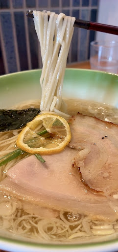 私の目の前に差し出された丼は、 とてもエレガントな器で、 ツルツル麺に、 チャーシュー2種類。 そしてレモン、海苔、 天かすが入ってます。 超シンプル☆彡