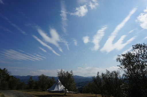 キャンプ場のフラットサイトを予約してましたが、当日は他に利用者がいなかったため、オーナーのご好意で好きな場所で設営をさせていただきました。 日中はオリーブ畑の作業員の方がおられますが、夕方からは静かで落ち着いた雰囲気になり、オリーブの木々の中という他のキャンプ場には無い非日常感が堪能できます。 水場やトイレも綺麗なため、利用する上でのストレスはありませんでしたが、エリア内にシャワー等は無いため、汗を流したい場合はご注意下さい。 (車で15分位の場所に温泉があり、割引券がいただけます。) なお、芝生の中に小さい羽虫等がたくさんいますので、季節によるでしょうが気になる方は森林香等の対策は必須です。