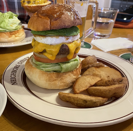 Really nice diner, closest to one in America I've found in Takamatsu. The chocolate shake was amazing and the onion rings were huge and delicious! The burgers were not my favorite, but it was an interesting style with bigger chunks of meat formed into a patty rather than just ground beef. Im sure someone might like that more than I did. The potato wedges could've used a bit more seasoning and the cheesecake and apple pie were decent. Definitely wanna go back to try to chili dogs that apparently have handmade...