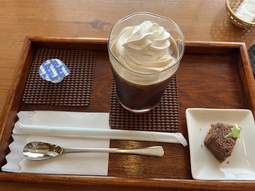 )✤ 冷たいシフォンケーキに 酸味のあるフル-ツのソ-ス(?)的な物をつけて食べると 味変になって... Read more店内は静かで落ち着いた雰囲気があり、ゆったりとした時間を過ごせます。ドリンクメニューが豊富で、ウインナーコーヒーやコーヒーフロートなど、気分に合わせて選べるのが嬉しいポイントです。価格もお手頃で、コーヒーには小さなスポンジケーキのようなお菓子が添えられており、ちょっとした甘みが嬉しいサービスでした。