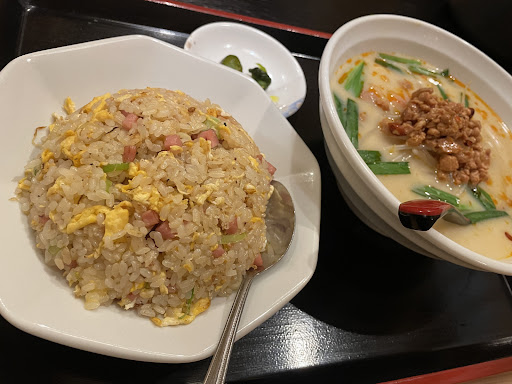 Read more夜遅くまで開いているし、まぁ、、行ってみようかな?ドキドキしながらと行ってみました。 ラーメンセット(台湾豚骨ラーメンと炒飯)と唐揚げを注文。台湾豚骨ラーメンという辛いのが苦手な私でもちょうどいいピリ辛の新感覚豚骨ラーメン! 炒飯は想像した感じ、 特にびっくりしたのは唐揚げ!!