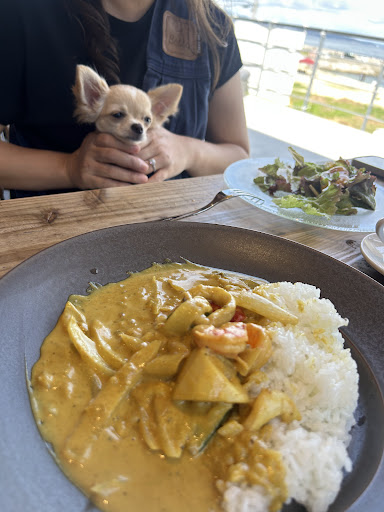 Read moreパスタセット、オムライス、カレーと頂きました。愛犬と一緒に食事が出来るなんて最高です。 パスタは生麺で大好きな麺です。美味しいかったです。最高 オムライス、カレーもサラダも美味しく、至福の時間が過ごせました。 1Fにはドッグランがあり風が通り涼しく愛犬も満足してくれたと思います。 瀬戸内の海と船を眺めながらの時間は、最高に贅沢でした。 屋上からは海と山の両方楽し...