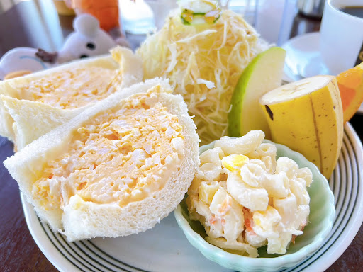 モーニングDセット(600円) たまごサンド サラダ マカロニ ドリンク