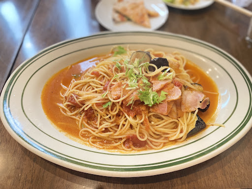 Read more週末の11時半に来店。ランチメニューはパスタを頼めばサラダピザ飲み物が食べ放題でコスパはかなりいいと思います。 味に関しては値段なりという感じで美味しくはないです。複数種を分け合って食べてみましたが、たらこパスタは水っぽく味も薄く残してしまいました。 ピザは焼き立てのタイミングかどうかで変わってきそうです。 ケーキは美味しかったです。 店員の接客は言われているほど悪くはなく、店員によって当たり外れが大きいのかもしれません。 最も気になったのはエアコンの古さです。室内機には数年レベルの埃と汚れが溜まっており清掃していないのは明らか、フィルターも詰まっているのか風が出てこないので店内が非常に暑いです。 飲食店として客の見える場所にあるエアコンをあの汚れ具合で放置してい...