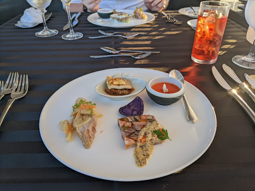 I came to this restaurant after choosing Clement as the venue for our wedding, but now I have concerns about the food for our guests. The best of the restaurant is the view. As a fine dinning restaurant the customer service was bad, we didn't get enough explanation about the dishes and we cannot ask about them because the server was there just to bring the food (even though we were the only table when we arrived). I was a bit disappointed from the course menu, the design of the dishes feels like it was randomly assembled, it had unmatching flavors for a French restaurant and the sauces were very light. Don't expect to get hot food, because this is a cold menu course, the only hot item was the steak (this was the only item on the course that we enjoyed). The wine menu lacks of explanation, this was the first time I see a wine menu which not includes the variety of the grapes and the waiter was not able to recommend us a pairing wine. The chocolate cake's taste was similar to what I can get at the grocery store. The worst of my expirience was the noise coming from the bar above, I was not able to talk with my wife due to the ongoing noise, I feel that sharing space with the bar affects the whole experience. You can find much better fine dinning options on this range of price...