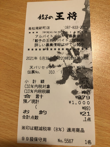 Read more接客業失格。行くと嫌な思いをするので損すると思います。 ホテル近くで久しぶりに大衆中華の王道である王将があるので行きました。 入店後カウンターに座るも前の客の跡の汚れあり →布巾で拭いてもらう。 水も言わないと出ない。 →後から来た客が優先。 コロナ対策は完全に不備。 →ウイルス対策が不完全で感染の恐れあり。