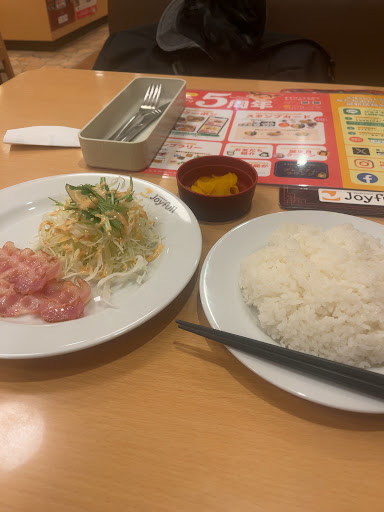 お誕生日前夜祭、ジョイフルアプリのクーポン券を利用し食事しました。1年間フリーパスのドリンク、スープバークーポンを利用するにあたり税込み328円の品を一品注文する必要があります。今回は2人利用でハイボール2杯を注文しました。ドリンク、スープ飲み放題に選べるクーポンからお料理を頼み、最後にお誕生日ケーキクーポンで〆ました。こちらのジョイフルさんはコンセント利用可能席があり大変助かります。店内は広くメニュー全体もコスパがよく家族連れ、お友達と、デート、商談に幅広い層のお客様が利用されています。残念な所は下が駐車場、二階が店内のため車いすの方などは利用が困難な点です。ウーバーイーツ、テイクアウトもありメニューは充実しています。いつも利用させて頂いております。ごちそう様でした。ps.朝5時から午前10時までのジョイフルモーニングが始まりました😆価格は328円から658円まで、和食、洋食揃っています。ドリンクバー付きでかなりお得です。本日は目...