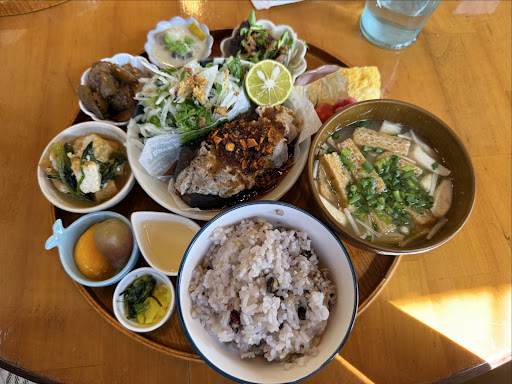 これがホントに美味しかった🎵 出来たての飲めるだし巻き玉子や 新鮮刺身、にんじん&ビーツのラペ 甘さを抑えたかぼちゃのマッシュサラダ? 美味しいごはん、そして具沢山豚汁♥ (メニュー名ちょっとイメージ入ってます...