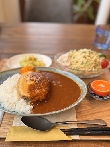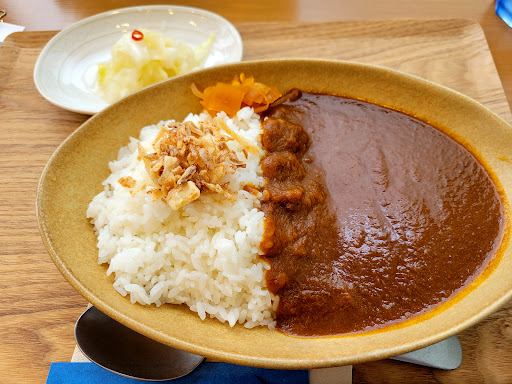 日替りは「トリつくね丼」 最近つくねを食べたトコなので 定番メニューのカレー(700円)をオーダー 初回なので、どシンプルにトッピング無し 待っている間にメニューを眺めて トッピング、ハンバーグってのアリだなぁと 思っていると着皿 フライドオニオンが載っていてアクセントになります 辛さは控えめだけど、後からじわ~っと 美味しさと共に温かみが来ます キャベツの漬物⁉️と思ってたら ピクルスかな、予想外で美味しかった🎵 次はインスタチェックしてえびめし狙...