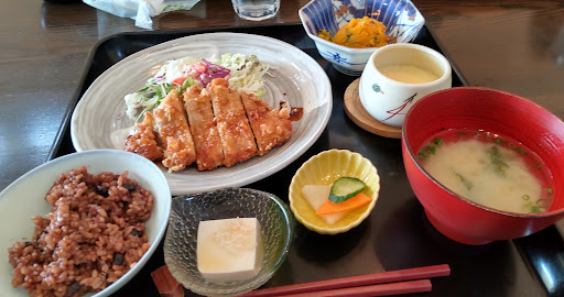 Read more看板がなければ、一般住宅にしか見えないこのお店。 ランチは日替わりでごはんに玄米を使ってます。おかずは野菜中心のヘルシーな献立になっています。プラス100円で酵素玄米ごはんに変更もできます。また、プラス300円で食後のデザートも追加できます。 玄米で作ったお餅も粒々感があり美味しかったです、お持ち...
