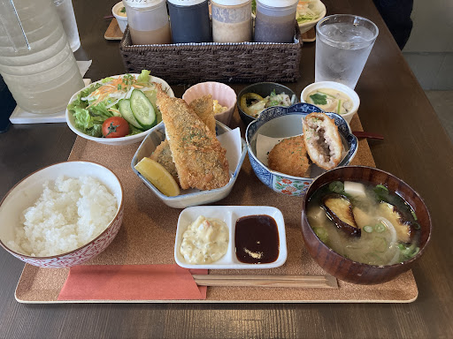 Read moreたぶんですが、前はお刺身が美味しいお店で、ホームランドームの近くのビルにあった所と同じかと思います。家の近くに移転して来て嬉しいです。 今回ランチで利用しました。フライ系がメインで副菜が数種類付いてて美味しいです。 今回は2人でアジフライランチとカキフライランチを頼みシェアしました。アジフライふわふわでカキフライもサクサクで美味しくて語彙力下がります。付いて来たミニ茶碗蒸しも熱々とろとろです。 食後のコーヒーも引きたて淹れたてで美味しいです。200円くらいでランチにつけられるので時間とお腹に余裕が有れば頼みたい一杯です。 注意点なのですが、お一人で回されている様ですのでお昼時は混みます。時間をずらすか少し早め、または電話して席確認してから行かれるといいかと思います。店の前の駐車場もそんなに数は無いので乗り合わせて行...
