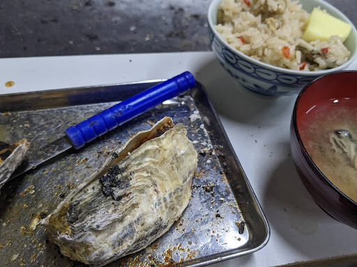 Read more2時間3,000円でカキ食べ放題です。 予約制なんで、鉄板は暖めていてくれてます。調味料持ち込みOK、アルミホイルなど使えば、野菜・ソーセージは一緒に焼けます。我々は、アヒージョをアルミホイル鍋で、少し作らせて貰いました😊 大きいスコップに1杯が1単位なので、カキをいくつ!って頼み方は出来ません。食べきれる量を考えておかわりしましょう。 カキご飯とカキの味噌汁が締めに食べれて、カキご飯がお土産に貰えます。 カキが大好きな方にはお勧めです。 仲間を募って4人以上...