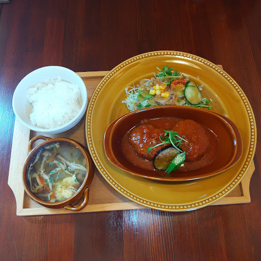 Read moreトマトソースを絡めた小ぶりながらも肉汁たっぷりのハンバーグがメイン。 青々としたサラダには新鮮さを感じられました👍🏻 ポテトサラダには刻んだクルミが入っており食感のアクセントになって、食べながら面白いなと思いました。 カボチャのスープは甘く優しい味でした😊 初めてお店を利用しましたが、接客も丁寧で、清潔感がありぜひ今回食べた食事以外も食べに行きたいと思いました🤗 尚、お店の入り口(外)にセルフの検温装置が有り、設置された説明に従って検温機を操作。セルフで検温後、入店して初めに体温をお店のスタッフさんに...