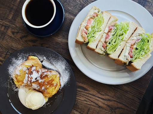 友人と2人で伺いました。 コーヒーを一杯ずつと、フレンチトーストスモークサーモンのサンドイッチをいただきました。 コーヒーは以前もテイクアウトをしたことがあったので美味しいのは分かっており、今回も美味しかったです。 ですが、ミルクが常温ポーションタイプのものでなんだか残念。 私はブラックで飲むので問題ないですが、友人はミルクを二つほど使っていたので味が落ちるだろうなーと思いながら見ていました。 無駄なコストは省きたいのだと思うのですが、珈琲しか出しません!とこだわるのなら細部までこだわって欲しいなと思いました。今時はミルクを置かない、なんて店もありますしね。 個人的にはミルクが必要か聞いて、小さな容器に牛乳を入れてくれるお店が1番有難いです。
